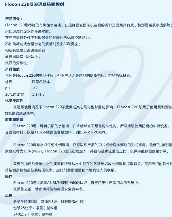 Floocn 220反滲透阻